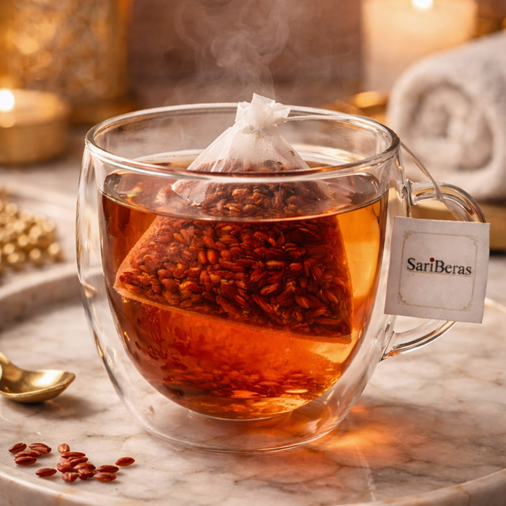 Penyeduhan yang tepat membantu mengeluarkan rasa dan aroma alami Teh Sari Beras secara maksimal.