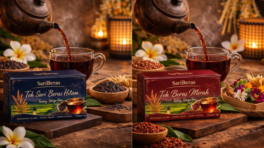 Teh Sari Beras bebas kafein karena dibuat dari sari beras pilihan, bukan dari daun teh. Proses ini menghasilkan minuman hangat yang lembut, aman dikonsumsi kapan saja, dan cocok untuk semua kalangan.